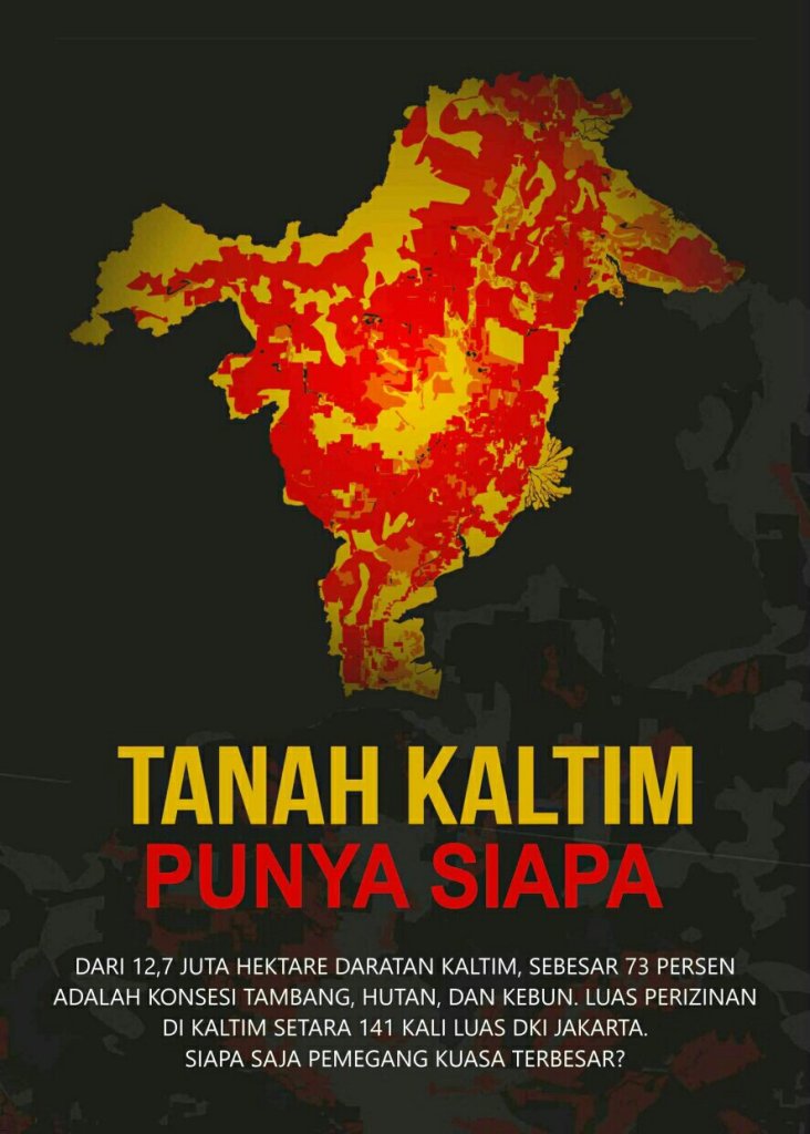 Dinamisator Jaringan Advokasi Tambang Kaltim, Pradharma Rupang, menyatakan bahwa penguasa tanah Kaltim sesungguhnya adalah korporasi. Sebanyak 9,33 juta hektare lahan dikuasai oleh 1.434 perusahaan pertambangan, 104 perusahaan kehutanan, dan 375 korporasi perkebunan.