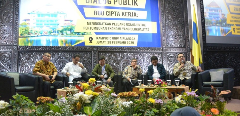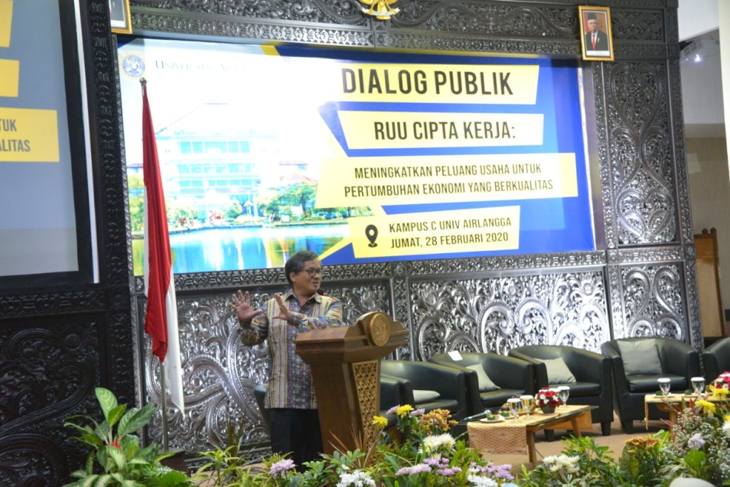 Universitas Airlangga menyelenggarakan Dialog Publik tentang RUU Cipta Kerja di Kampus C Unair Surabaya. Acara ini dihadiri oleh Rektor, Wakil Rektor, Dekan, Wakil Dekan, dan segenap mahasiswanya. Hadir pula dalam acara tersebut Wakil Ketua Umum KADIN Jawa Timur Bidang Investasi, serta perwakilan organisasi kemasyarakatan di Jawa Timur. (map/iqb)