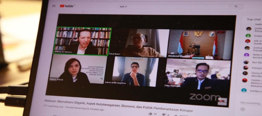 Dikutip dari website resminya, Diskusi online yang dipandu oleh Kepala Biro Humas KPK Febri Diansyah ini menghadirkan 4 pemateri yaitu Chair of the Departement of Political Science North Western University Jeffrey Winters, Jurnalis dan Founder Narasi TV Najwa Shihab, Pakar Hukum Tata Negara UGM Zainal Arifin Mochtar dan ekonom Faisal Basri.