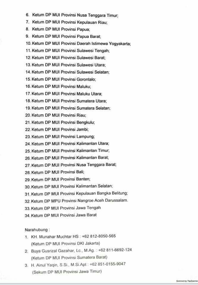 - Bila maklumat ini diabaikan oleh Pemerintah Republik Indonesia, maka kami Pimpinan MUI Pusat dan segenap Pimpinan MUI Provinsi se-Indonesia mengimbau Umat Islam Indonesia agar bangkit bersatu dengan segenap upaya konstitusional untuk menjadi garda terdepan dalam menolak faham komunisme dan berbagai upaya licik yang dilakukannya, demi terjaga dan terkawalnya Negara Kesatuan Republik Indonesia (NKRI) yang berdasarkan Pancasila dan UUD 1945.