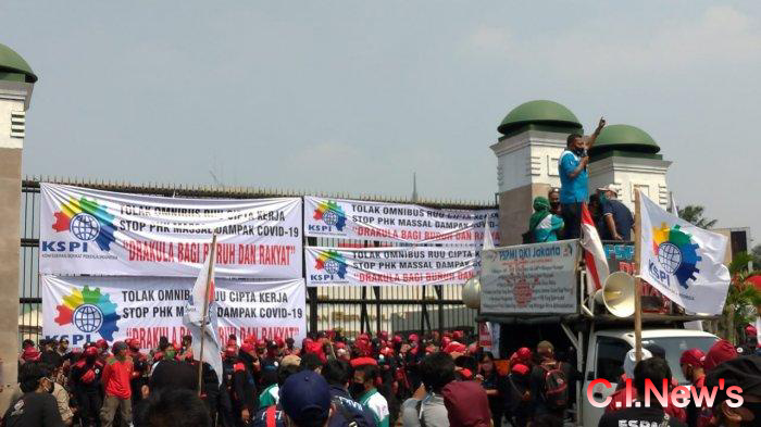 (KSPI) Kahar S Cahyono mengatakan, ratusan buruh atau pekerja kembali melakukan aksi unjuk rasa di depan gedung DPR, Senayan. Sebelumnya diberitakan, pada masa reses ini, DPR RI melanjutkan pembahasan Daftar Inventarisasi Masalah (DIM) RUU Cipta Kerja.
