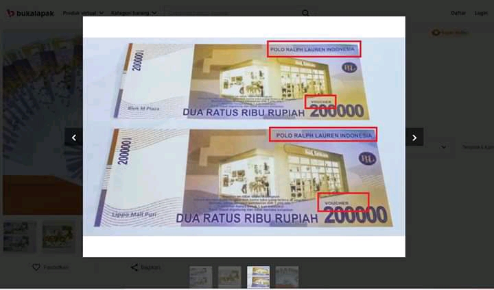 Setelah dilakukan penelusuran, ternyata lembaran kertas yang diklaim sebagai uang pecahan Rp 200.000 tersebut adalah voucher belanja produk yang dikeluarkan oleh Polo Ralph Indonesia.
