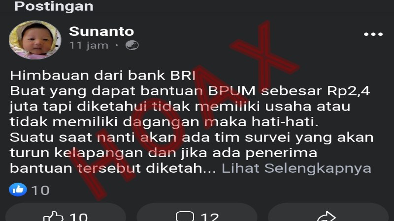 Himbauan Bank BRI Untuk Penerima Bantuan BPUM Di Medsos [HOAKS]