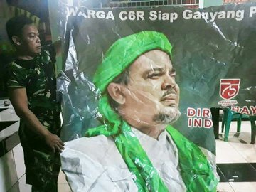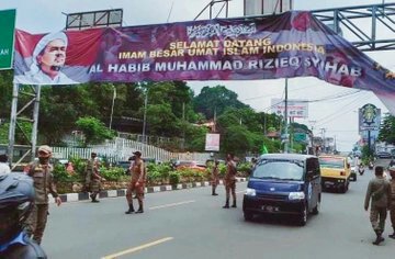 Dalam foto terlihat banyak spanduk bergambar Habib Rizieq Shihab dengan tulisan seruan ‘revolusi akhlak’.