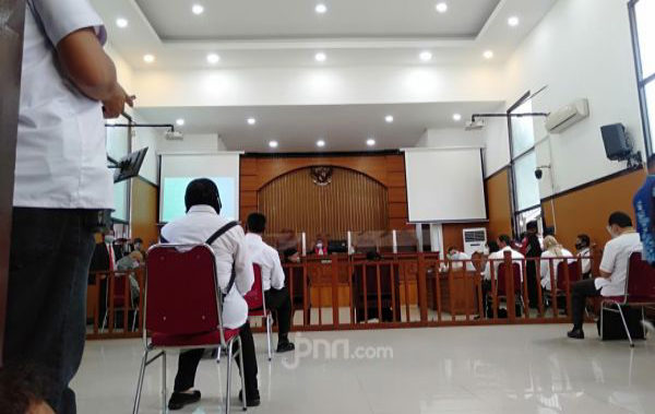 Petugas keamanan pengadilan juga menanyakan maksud dan tujuan pengunjung yang datang apakah untuk persidangan atau bukan, namun untuk aparat dan media dibolehkan masuk.