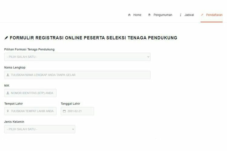 Lalu tulis nama lengkap Anda tanpa gelar. Kemudian isi juga data NIK, tempat lahir, tanggal lahir, jenis kelamin, alamat, provinsi, nomor handphone, elamat e-mail, pendidikan, hingga instansi pendidikan.
