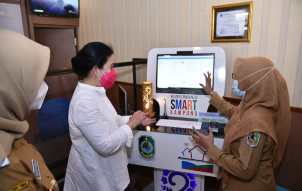 Puan mengapresiasi terobosan Pemkab Banyuwangi yang memaksimalkan pemanfaatan teknologi untuk melayani publik, untuk menyelesaikan sejumlah urusan kependudukan melalui program Smart Kampung.