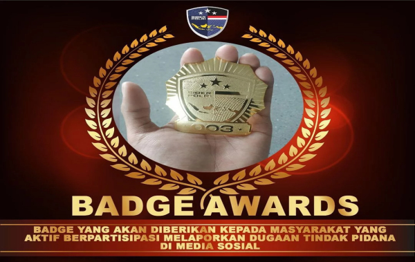 “Badge Awards: Badge yang akan diberikan kepada masyarakat yang aktif berpartisipasi melaporkan dugaan tindak pidana di media sosial,” tulis keterang gambar yang diunggah Instagram @ccicpolri dan dikutip pada, Rabu (17/3/2021).