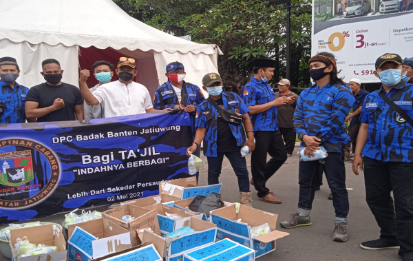 TANGERANG — DPC Badak Banten Kecamatan Jatiuwung bagikan takjil kepada masarakat yang melintas di kawasan industri jatake Ramadhan penuh keberkahan di bulan Ramadhan