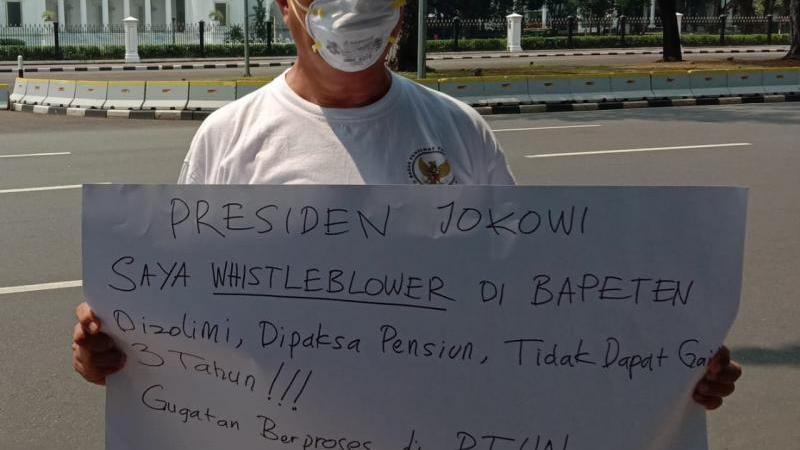 JAKARTA — Aksi demo tunggal nekat dilakukan oleh pelapor kasus dugaan korupsi oknum di Badan Pengawas Tenaga Nuklir (Bapeten) Togap Marpaung di Bareskrim Polri, karena kasus yang dilapornya tak ada kemajuan dalam penangannya.