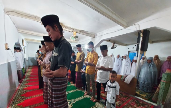 Pelaksanaan Shalat Idul Fitri di Surau Baitul Makmur berlangsung khidmat diawali dengan membaca lafaz takbir oleh jamaah.