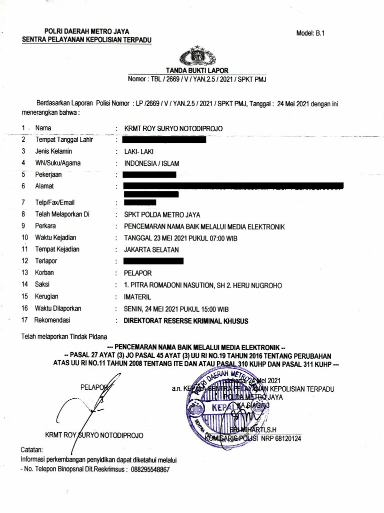 JAKARTA – Hari ini Penyidik Direktorat Reserse Kriminal Khusus Polda Metro Jaya lakukan menindaklanjuti laporan mantan Menteri Pemuda dan Olahraga Roy Suryo, terkait dugaan pencemaran nama baik yang dilakukan pesinetron Lucky Alamsyah.