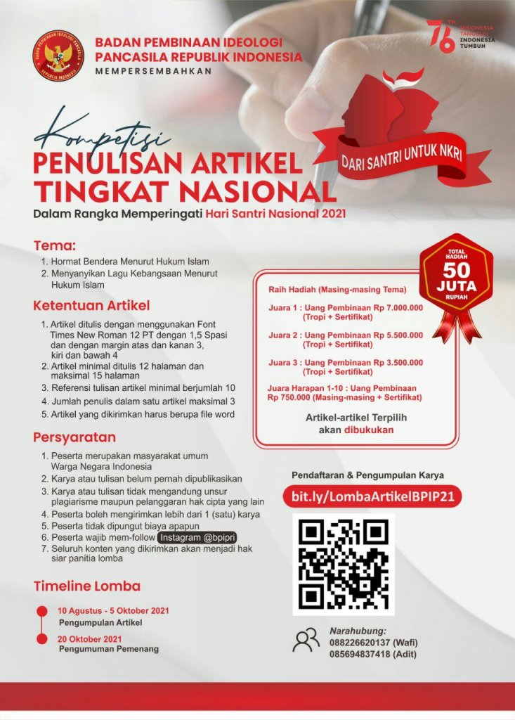 Diketahui, BPIP menyelenggarakan lomba dengan dua tema yaitu tema pertama adalah “Hormat Bendera Menurut Hukum Islam” dan kedua, “Menyanyikan Lagu Kebangsaan Menurut Hukum Islam”.