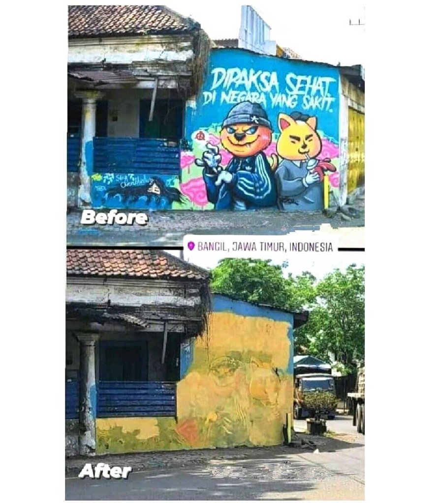 Kemudian Satuan Polisi Pamong Praja (Satpol-PP) Kabupaten Pasuruan pun menghapus mural tersebut.