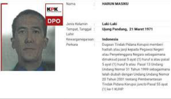 Interpol pun telah menerbitkan red notice untuk Harun Masiku. Dengan diterbitkannya red notice itu, Harun Masiku saat ini terdaftar sebagai buronan internasional.