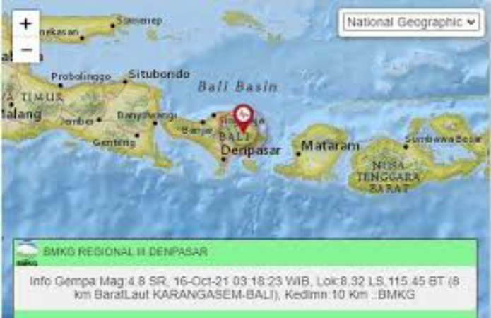 DENPASAR – Gempa bermagnitudo (M) 4,8 yang terjadi di Kabupaten Karangasem, Bali, pada pukul 03.18 WIB disebabkan aktivitas sesar atau patahan aktif lokal, menurut Kepala Bidang Mitigasi Gempa Bumi Badan Meteorologi, Klimatologi dan Geofisika (BMKG) Daryono.