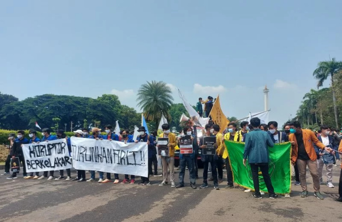 Mahasiswa juga menuntut diberhentikannya Firli Bahuri sebagai Ketua KPK dan mengembalikan marwah lembaga tersebut dalam agenda pemberantasan korupsi.
