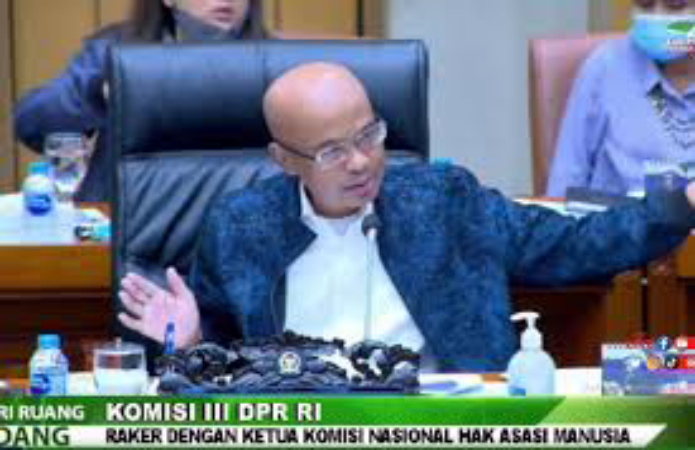 JAKARTA – Wakil Ketua Komisi III DPR Desmond J Mahesa mengusir perwakilan Komisi Nasional Anti Kekerasan terhadap Perempuan (Komnas Perempuan) saat agenda rapat kerja di DPR, Kamis (13/1/2022).