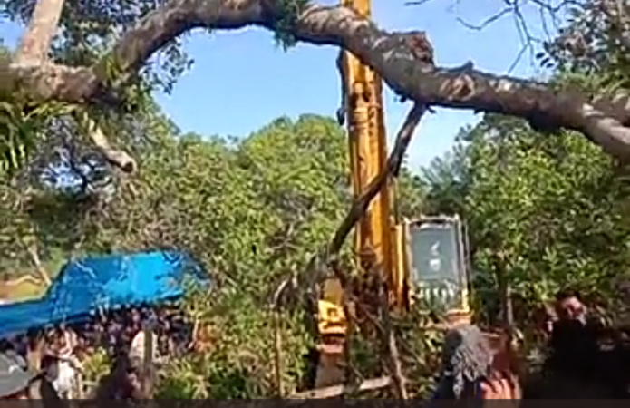 Pagar pembatas dan tanaman jambu mete dirusaki, ironisnya aparat Polisi dan TNI justru ikut mengkawal.