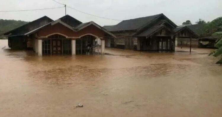 TANAH LAUT — Banjir di Kabupaten Tanah Laut, Provinsi Kalimantan Selatan sejak, Selasa (8/3), Sebanyak 412 rumah warga terendam banjir dan 1.312 jiwa dari 428 KK terdampak.