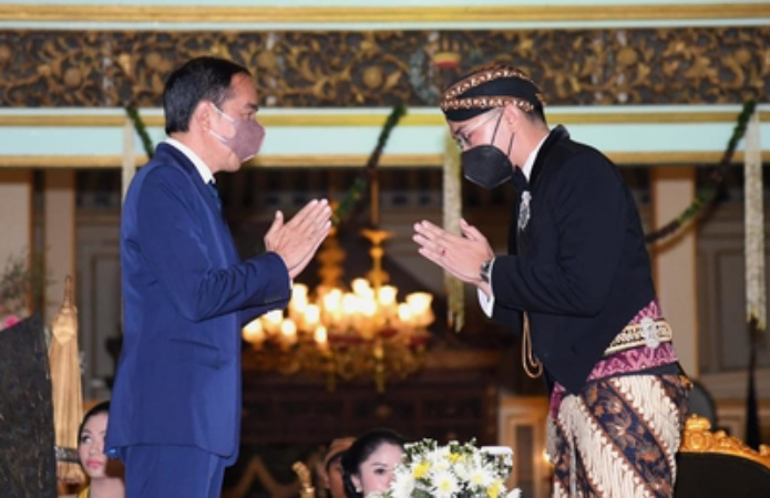 JAKARTA – Presiden Republik Indonesia Joko Widodo (Jokowi) mengucapkan selamat atas pengukuhan Gusti Pangeran Hario (GPH) Bhre Cakrahutomo Wira Sudjiwo sebagai Kanjeng Gusti Pangeran Adipati Ario (KGPAA) Mangkunagoro X di Pura Mangkunegaran, Kota Surakarta, Sabtu (12/03/2022).