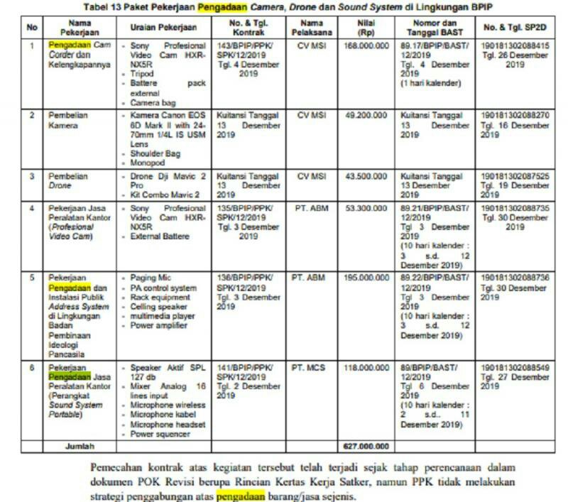 Sementara saat di konfirmasi, Kepala BPIP Yudian Wahyudi menyatakan, BPIP telah menindaklanjuti hasil pemeriksaan BPK tersebut.