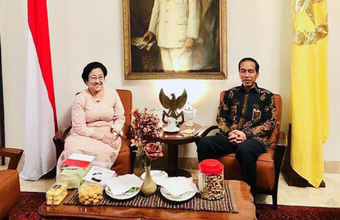 Tampak dalam foto itu, Jokowi yang duduk berhadapan dengan Megawati terlihat sedang membuka dan memandang album foto. Sementara tatapan Megawati fokus ke arah kamera.