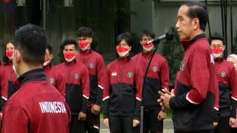 BOGOR — Presiden Joko Widodo (Jokowi) melepas keberangkatan kontingen Indonesia ke SEA Games 2021 Vetnam di Istana Negara, Bogor, Jawa Barat, Senin (9/5) pagi ini.