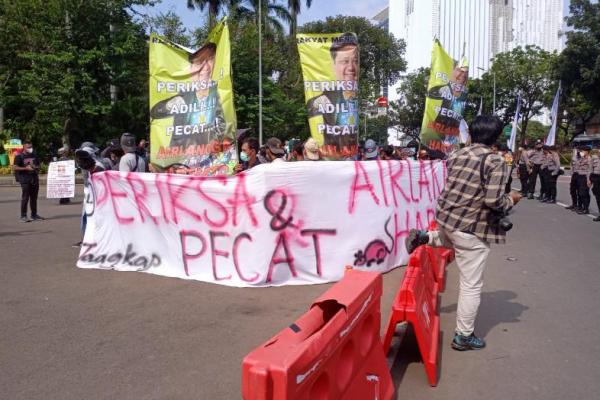 “Kami telah melakukan penelusuran dan penelitian secara komprehensif terhadap sejumlah dosa besar yang diduga dilakukan Airlangga Hartarto. Sejak dia menjabat sebagai anggota DPR RI, Menteri Perindustrian hingga Menko Perekonomian,” kata Muhammad Rizqi Azqiyya kepada awak media di lokasi aksi.