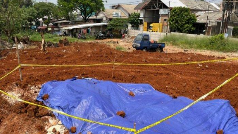 Garis polisi pun terpasang di lokasi kejadian, dan galian tanahnya pun masih terbengkalai.