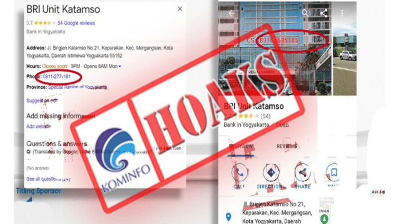 JAKARTA – Beredar nomor telepon kantor Bank Rakyat Indonesia (BRI) unit Katamso, Yogyakarta. Nomor tersebut diklaim ada di pencarian Google Maps.