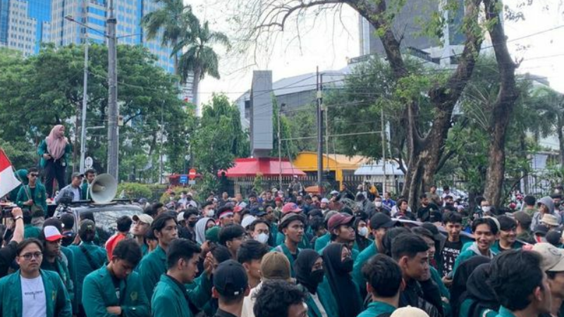 Hari ini, elemen massa dari Kongres Aliansi Serikat Buruh Indonesia (KASBI) dan gabungan mahasiswa turut menyuarakan penolakan kenaikan BBM.