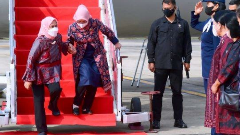 JAMBI – Ibu Negara Iriana Joko Widodo (Jokowi) bersama Istri Wakil Presiden (Wapres), Wury Ma’ruf Amin, bertolak ke Provinsi Jambi pada, Kamis (20/10/2022).