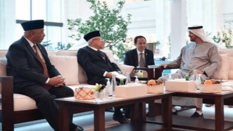 JAKARTA – Wakil Presiden Ma’ruf Amin melakukan pertemuan bilateral dengan Presiden Uni Emirat Arab (UAE) Mohammed bin Zayed Al Nahyan (MBZ) di Istana Al Shatie Abu Dhabi.