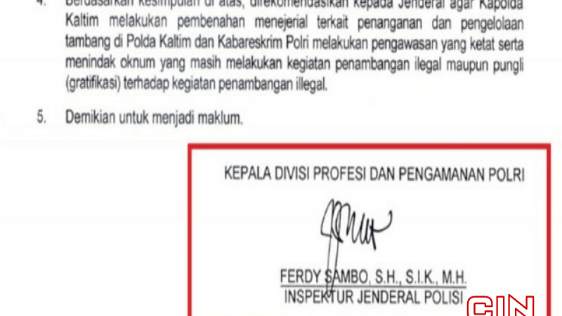 Pada surat yang diteken Ferdy Sambo itu dijelaskan Divpropam menemukan sejumlah fakta-fakta. Yaitu di wilayah hukum Polda Kaltim (Kalimantan Timur) terdapat penambangan batubara ilegal.