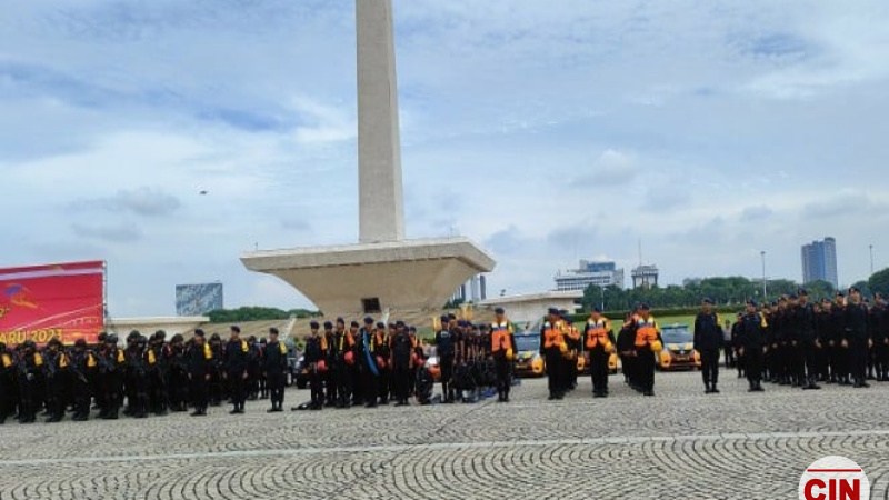 Ribuan pasukan gabungan TNI dan Polri ini telah siap sejak pukul 05.00 WIB di Lapangan Cawan Selatan Monas.