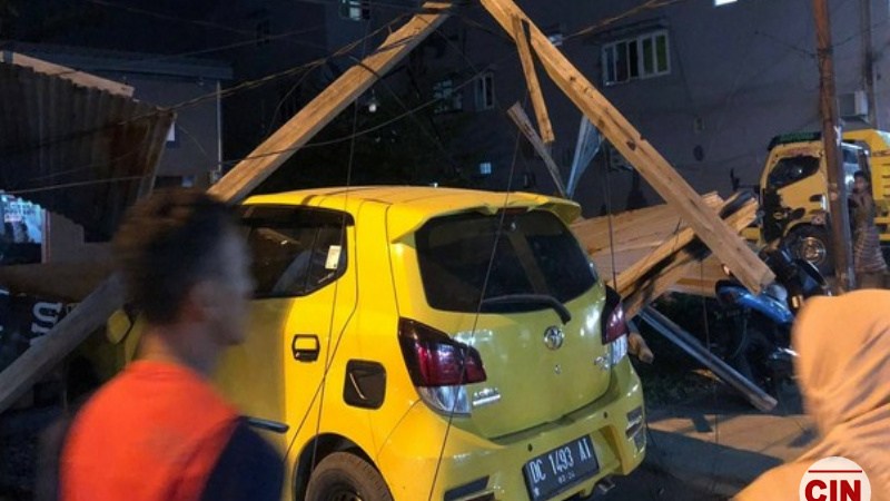 Angin kencang di Kota Mamuju ini, juga mengakibatkan satu unit kendaraan mengalami kerusakan akibat tertimpa material.