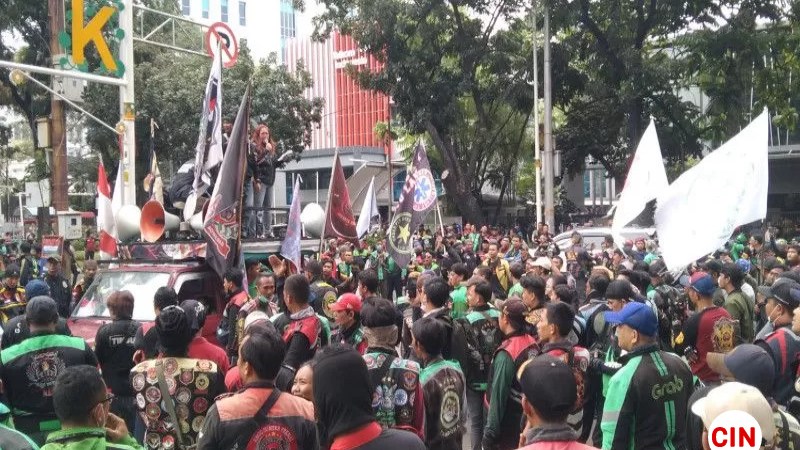 Diketahui, massa aksi yang terdiri atas pengemudi ojek daring menggeruduk gedung DPRD DKI Jakarta. Mereka mendesak Pemprov DKI membatalkan rencana kebijakan jalan berbayar.