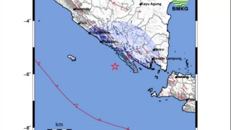 BANADAR LAMPUNG – Gempa bumi magnitudo 4,8 mengguncang Kabupaten Pesisir Barat, Lampung pada Sabtu (25/2/2023) pukul 09.08 WIB.