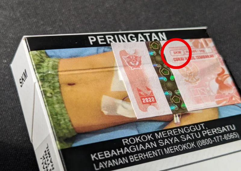 Berikut adalah tampilan dari kedua jenis pita cukai sigaret kretek tangan (SKT) dan sigaret kretek mesin (SKM) :