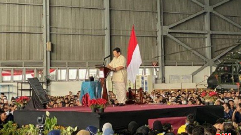 “Indonesia harus waspada dan Indonesia harus kuat, ini adalah hukum sejarah, yang tidak kuat akan diinjak-injak dan dijajah kembali. Penjajahan zaman sekarang tidak seperti dulu, sekarang tidak kelihatan, tapi macam-macam mereka untuk menguasai,” kata Prabowo.