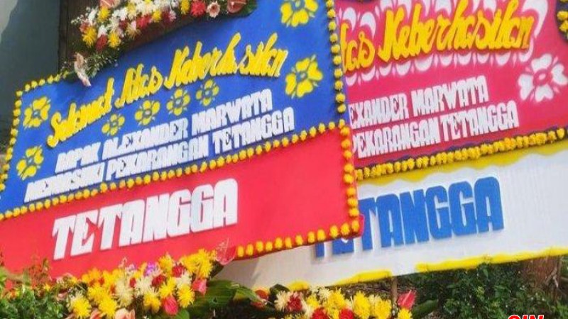Dari foto beredar, karangan bunga dikirimkan atas nama ‘tetangga’ ke Wakil Ketua KPK Alexander Marwata dan Plt Deputi Penindakan dan Eksekusi sekaligus Direktur Penyidikan Asep Guntur. Isinya berupa selamat karena sudah memasuki pekarangan rumah ‘tetangga’.
