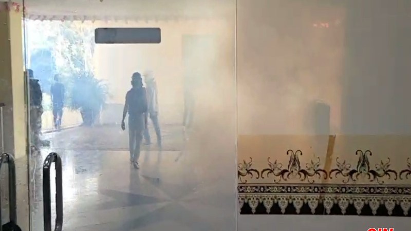 Polisi yang berjaga di lokasi berusaha membubarkan massa dengan menggunakan gas air mata dan water cannon. Namun, hal itu tidak membuat warga mundur. Mereka malah membalas lemparan polisi dengan batu, air mineral, besi, dan kayu.