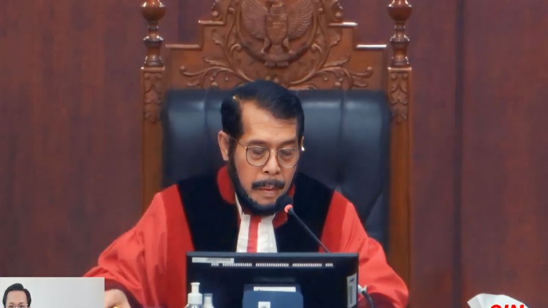 “Mahkamah berkesimpulan: mahkamah berwenang mengadili permohonan pemohon; pemohon memiliki kedudukan hukum untuk mengajukan permohonan a quo; pokok permohonan pemohon tidak beralasan menurut hukum untuk seluruhnya,” kata Anwar.