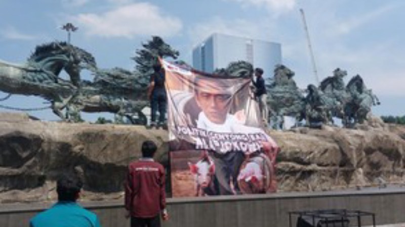 Aliansi Badan Eksekutif Mahasiswa Seluruh Indonesia (BEM SI) mengungkap arti spanduk bertuliskan ‘Politik Gentong Babi Ala Jokowi’ yang mereka pasang.