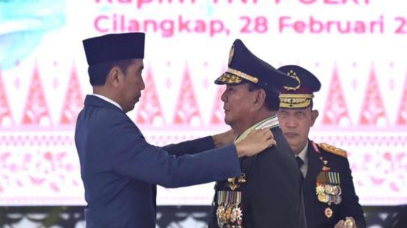 JAKARTA – Presiden Joko Widodo (Jokowi) secara resmi menganugerahkan kenaikan pangkat secara istimewa kepada Menteri Pertahanan Prabowo Subianto menjadi Jenderal TNI Kehormatan Purnawirawan. Momen itu terjadi dalam Rapat Pimpinan TNI/Polri di GOR Ahmad Yani, Markas Besar TNI, Cilangkap, Jakarta Timur, Rabu (28/2/2024).