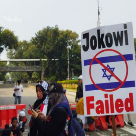Di Aksi Demo Tolak Timnas Israel Ada Poster Bertuliskan ‘Jokowi Failed’ di Kawasan Patung Kuda