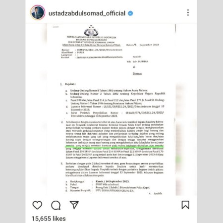 Burhan Sahabat UAS Diperiksa Polisi Karena Bantu Sedekah Makanan Untuk Warga Rempang